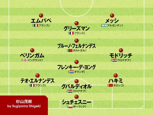 スーパースターの活躍あり、ブレイクした選手も出て、多くのプレーヤーの好プレーが見られたカタールW杯。今大会のベストイレブ…