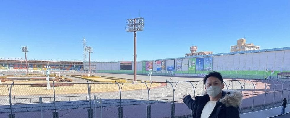 ※トップに掲載の写真は、走路改修前の川口オートレース場をバックに記念撮影を行う筆者