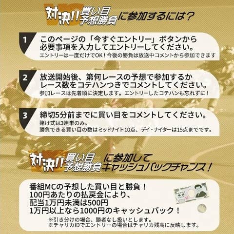 この番組は、出演陣と視聴者による対決形式のオートレース予想番組!