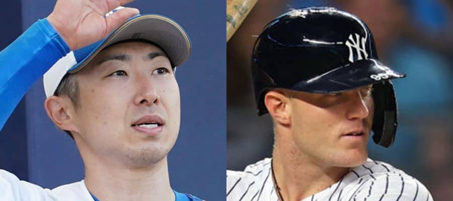 引退を発表した金子千尋(左)とDeNAと契約したトレイ・アンバギー【写真:荒川祐史、Getty Images】
