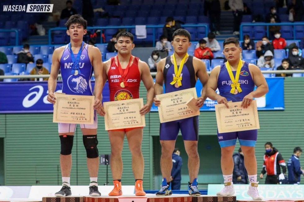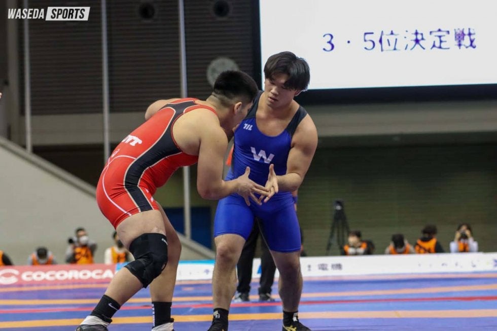天皇杯全日本選手権は2日目を迎えた。早大からは女子50キロ級の伊藤海(社2=京都・網野)に加え、男子フリースタイル97キロ級山崎祥平(商4=茨城・土浦日大)と男子グレコローマンスタイル97キロ級北脇香(スポ1=山梨・韮崎工)が順位決定戦に臨んだ。結果は、伊藤が準々決勝敗退、山崎が3位、北脇が5位であった。