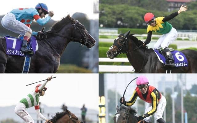 イクイノックス(左上、撮影:下野雄規)、エフフォーリア(左下、撮影:橋本健)、タイトルホルダー(右上)、ジェラルディーナ(右下)(c)netkeiba.com