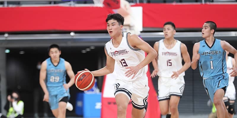 12月24日の第6試合、東京体育館で「SoftBank ウインターカップ2022 令和4年度 第75回全国高等学校バスケットボール選手権大会」の初陣を迎えた福大大濠は、尽誠学園高校(香川県)を寄せ付けず97−45で快勝。第1クォーターから22−6と差をつけ、危なげなく2回戦へと駒を進めた。