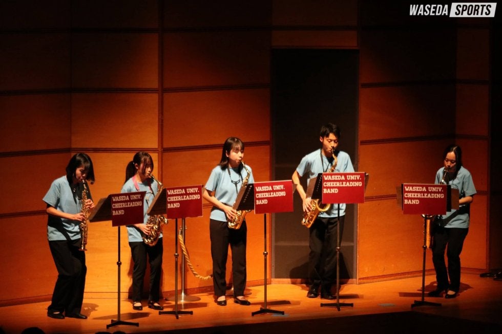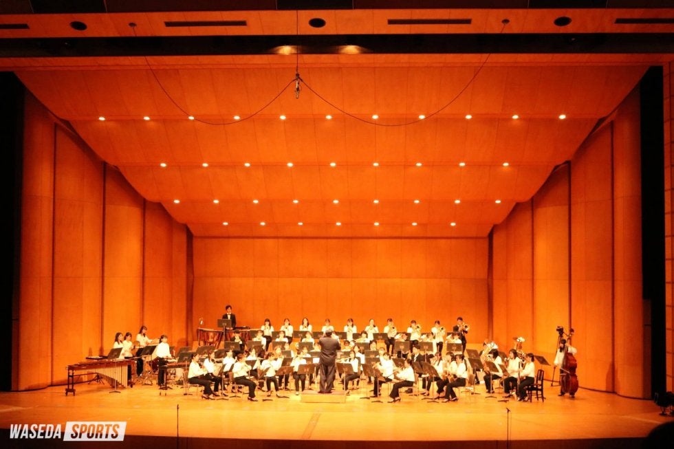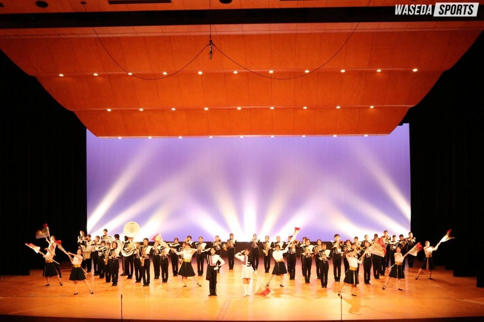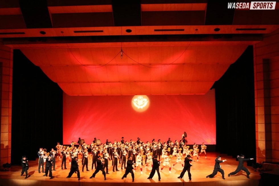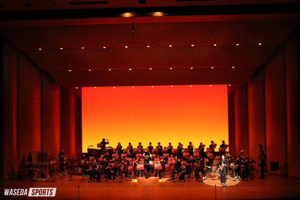 第1部はシンフォニックステージ。開幕にふさわしく『Curtain Up!』で幕を開けた。金管楽器のファンファーレに始まり、さまざまに曲調が変化するこの曲で華やかなスタートを迎える。演奏を終えると、齋藤舞チアリーダーズ主務(創理4=埼玉・早大本庄)による司会進行が開始された。『さくらのうた』では各楽器のソロを織り交ぜながら桜の華やかさと春のはかなさを表現。春の風景を彷彿(ほうふつ)とさせる趣深い雰囲気の楽曲に観客も酔いしれた。『Orient Express』では観客を超豪華列車オリエント急行の旅へといざなう。風景と列車の音を音色で再現し、終着駅へと送り届けた。3曲を披露し終えると校歌1番を演奏し、第1部を終えた。