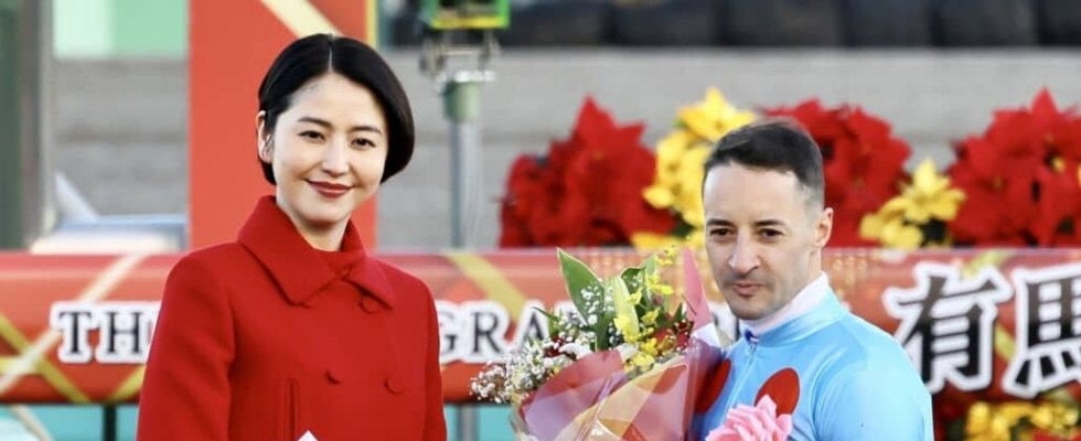 JRA年間プロモーションキャラクターの長澤まさみさんと有馬記念で勝利したC.ルメール騎手 (C)競馬のおはなし
