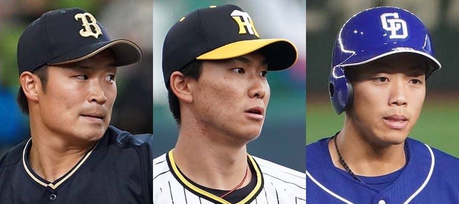 オリックス・阿部翔太、阪神・湯浅京己、中日・岡林勇希(左から)【写真:荒川祐史】