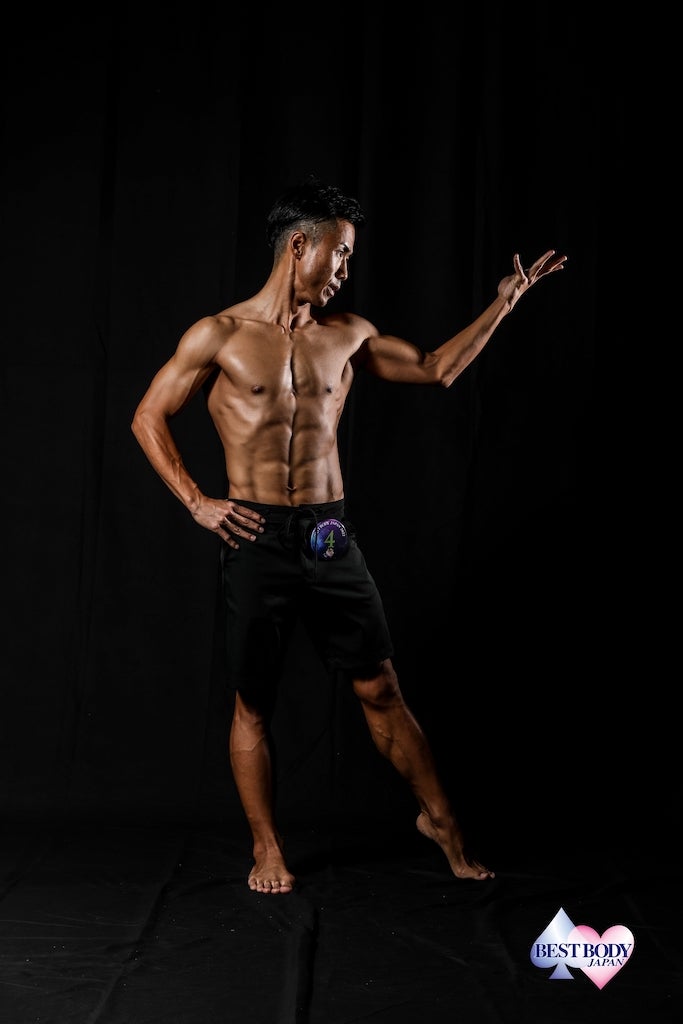 30歳から自分磨きのためにボディメイクを始めて現在までずっと継続してきました。 その結果、肉体的にも精神的にも大きく成長でき、この成果をカタチに残したいと思って出場を決意しました。