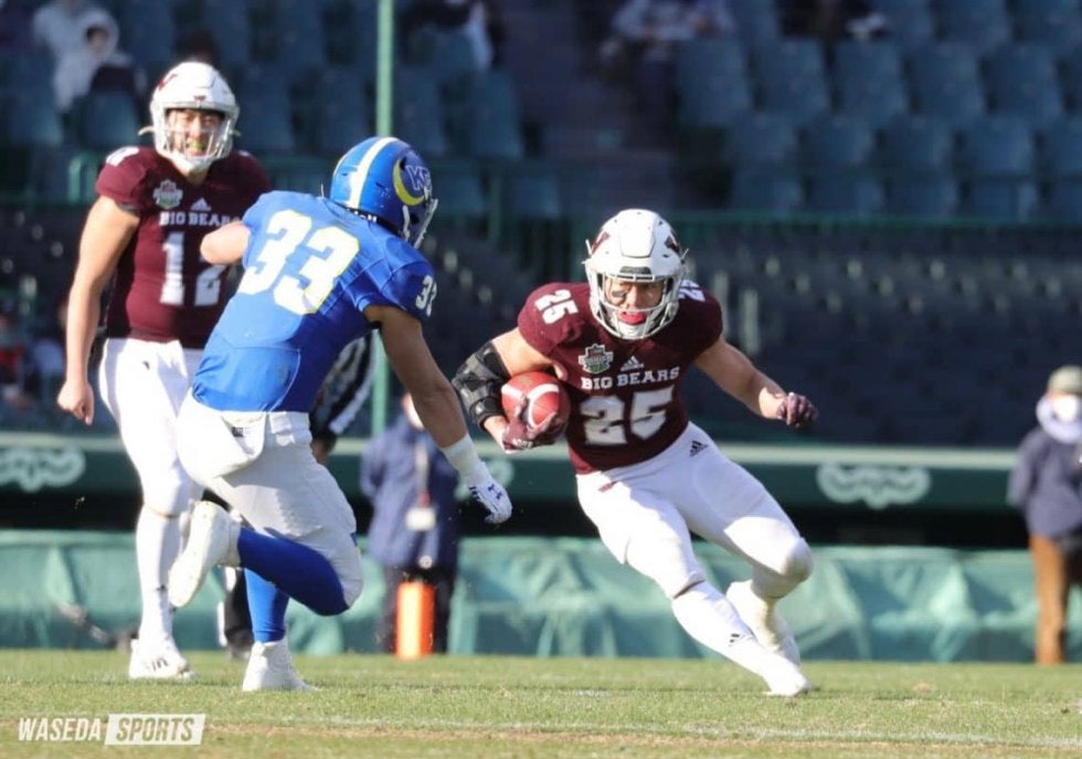 甲子園ボウルは全てが新鮮でした。最後は悔しい結果に終わってしまい、後悔もありますが、甲子園ボウルという舞台で最高の仲間と戦えたことは誇りに思うと同時に、感謝をしております。あとは後輩に託したいと思いますが、あの場所で勝つには必ず来年も再来年も早稲田が出続けることが重要であると感じました。関学はとんでもなく強いです。個人個人というよりは、完成度と精度がとんでもないです。その関学に勝てるように、関学以上の練習量をこなして借りを返して貰いたいです。後輩には期待しかないですし、必ずやってくれると思いますので陰ながら応援しております。