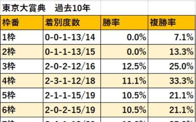 12月29日に大井競馬場で行われる東京大賞典(3歳上・GI・ダ2000m)について、過去10年の枠順データから検証し…