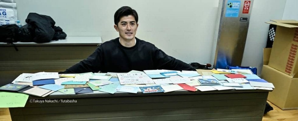 カタール渡航前日に、川崎フロンターレサポーターからの手紙を前にする谷口彰悟 撮影:中地拓也