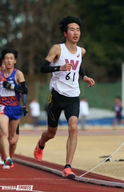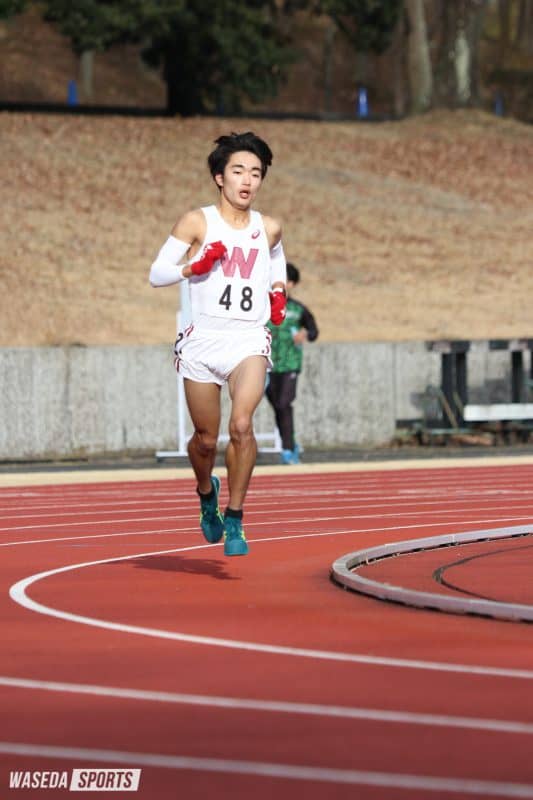 5000メートルには早大から6人が出場。レースはスタートから、他大学の選手が集団を引っ張るかたちとなった。3周目で早くも集団はばらけ始め、杵鞭源(人1=愛知・旭野)、日野斗馬(商2=愛媛・松山東)、伊藤幸太郎(スポ1=埼玉・春日部)は集団の中で食らいつくが、中田歩夢(人2=埼玉・所沢北)、小玉瑞葵(文2=福島・安積)、増永峰土(商1=神奈川・逗子開成)は集団から遅れてしまう。中盤にかけて日野、杵鞭、伊藤幸も次第に先頭集団からこぼれて、それぞれ単独走でレースを進めることになった。箱根のエントリーメンバーがエールを送る中、伊藤幸はラストスパートで順位を上げ、早大勢トップとなる8位でフィニッシュ。また、今レースが選手としてのラストレースとなる中田は15分42秒74のタイムでレースを終えた。