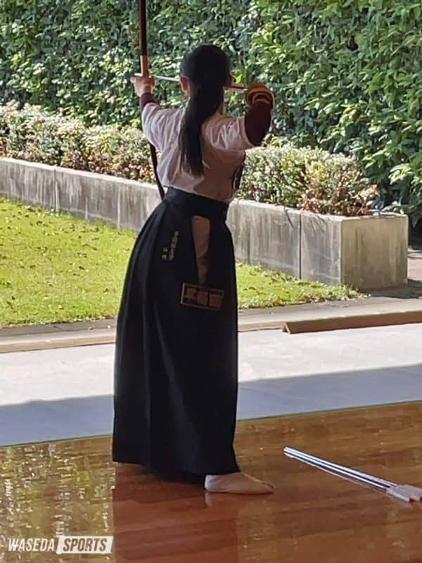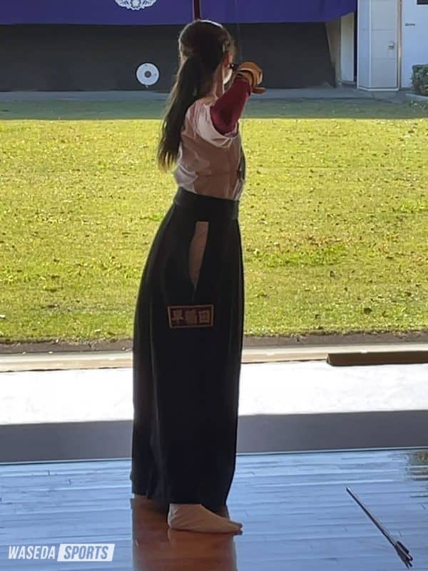 ほとんどずっと大前で引かせてもらって、早稲田の大前だとちゃんと言えるような、早稲田の大前として恥ずかしくないような自分の射でいようと思って、それをずっと継続してきました。最後もリーグ戦でしっかり大前で全部出て、入れ替え戦も大前でしっかり当てて終われたというのは、集大成の試合だったなと思います。今までもずっと頑張って会をもとうとか、残心を決めようとか、やることをやり切ろうとか思っていても、何本かはできない矢があったりしました。今日は外してしまったのもありますがそういう嫌な抜き方ではなかったですし、大前で終われたというのもありますし、いい的中で終われたましたし。4年間周りや指導陣の方が大前で引かせてくれたのもありがたいですし、自分もよく頑張ったなあと(笑)、自分で自分を褒めて終われることが一番良かったと思います。