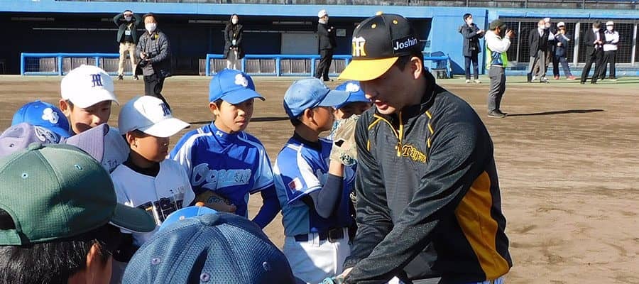 阪神・岩崎優投手 野球教室で内野守備を指導 ゴロを捕る時はミスを減らすタイミングが2つある。1つは、打球が落ちてくる時。…