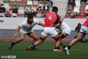最初にディフェンスで僕のところでゲインされてしまって、(早大が)そこからペナルティーを犯し、点数を取られる場面がありました。入りの部分はまだまだ改善できる部分があるのかなと思います。