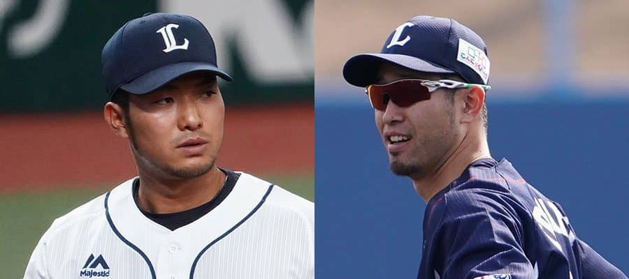 西武・柘植世那(左)と外崎修汰【写真:荒川祐史】