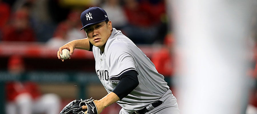 2回は1死二塁とされるも、連続空振り三振で3アウト。ヤンキースが3回にグレゴリウスのタイムリーで同点とすると、田中は6回先頭のメイビンを中飛に仕留めるまで13打者連続アウトとした。5回2死では、エスピノーザのマウンド横への弱いゴロに決死のダイブを見せ、一塁に送球する執念のプレーも見せた。
