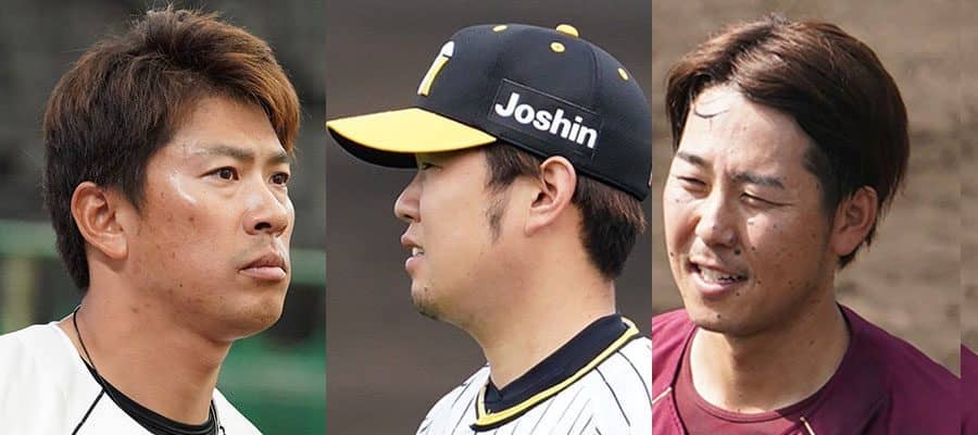 ロッテ・角中勝也、阪神・西勇輝、楽天・鈴木大地(左から)【写真:荒川祐史】