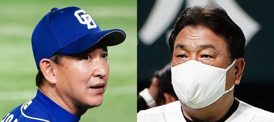 中日・立浪和義監督(左)とソフトバンク・藤本博史監督【写真:荒川祐史】