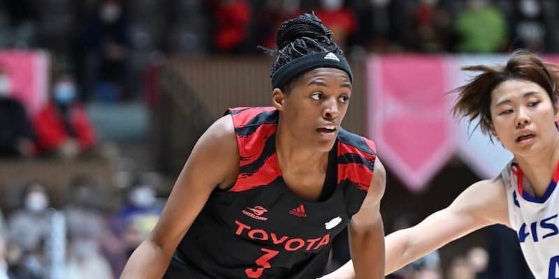 トヨタ自動車アンテロープスはアイシンウィングスと対戦した。梅沢カディシャ樹奈が23得点、馬瓜ステファニーが14得点11リバウンドを挙げ、トヨタ自動車が第1戦に77-51で先勝。続く第2戦ではアイシンの峰晴寿音に23得点を奪われるも、馬瓜が17得点7リバウンド5アシストとチームをけん引し、83-53で連勝を飾った。