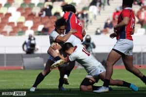 全国大学選手権(大学選手権)準決勝・京産大戦では、抜きつ抜かれつの息をもつかせぬ展開をわずか「1点」差で制し、早大は勝負をものにした。ここまでの大学選手権を振り返ってみればいずれも「勝負強さ」が際立っている。初戦の東洋大戦では、勢いのある相手に押され、まさかのビハインドで折り返したが、徐々に早大らしさを取り戻し勝利した。続く準々決勝の明大戦では、1トライ1ゴールで逆転負けの危機に迫られていた中、ラストワンプレーで明大に自陣深くへと猛攻され、我慢の時間が続く。だがこれを耐えしのぎ、最後はフランカー相良昌彦主将(社4=東京・早実)がジャッカルを決め、手に汗握る勝負に決着を付けた。