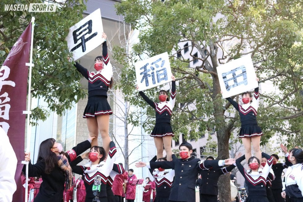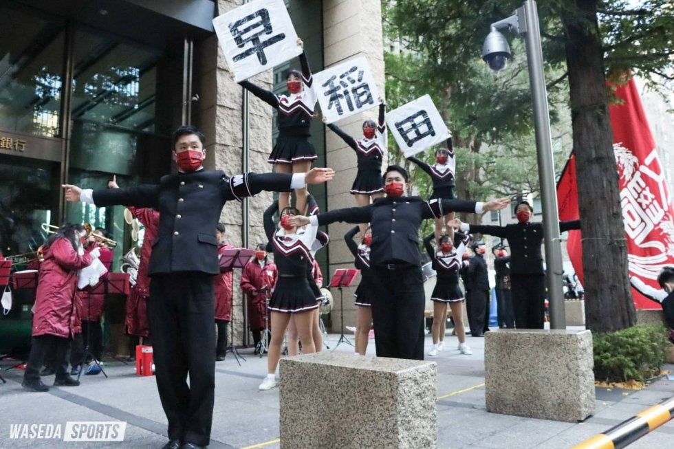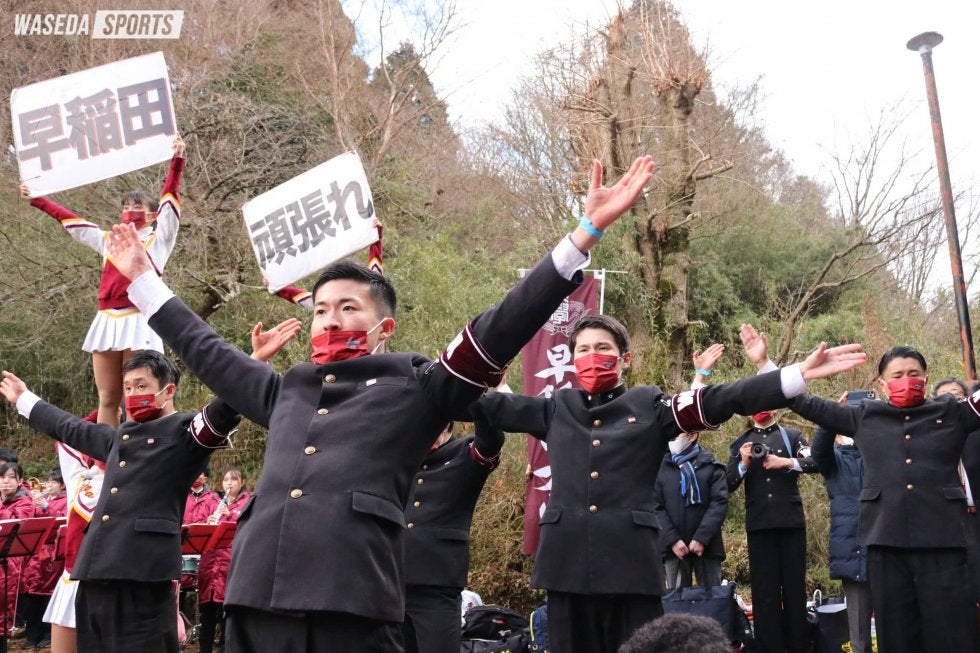 令和5年1月2日、3日。早稲田大学応援部は3年ぶりに東京箱根間往復大学駅伝(箱根駅伝)の沿道応援に臨んだ。計217.1キロメートルにわたってタスキをつなぐ競走部の選手を現地で応援できるのは3年ぶり。大手町、芦ノ湖、西新橋の3地点で選手に直接エールを届けた。また、箱根駅伝応援は例年、新体制一発目の表舞台でもある。令和5年度執行委員を筆頭に新生応援部がこの1年をスタートさせた。