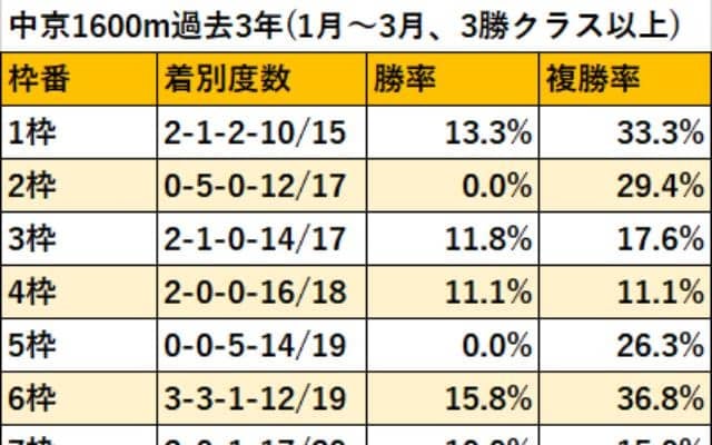 1月8日に中京競馬場で行われるシンザン記念(3歳・GIII・芝1600m)について、枠順データから検証していく。なお…