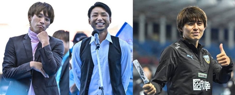 左から川崎フロンターレの橘田健人、小林悠、脇坂泰斗 撮影:中地拓也
