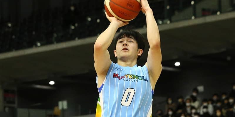 四日市メリノール学院をけん引したエース、榎木璃旺(3年)は準決勝でも20得点10リバウンドとダブルダブルの活躍。試合開始から積極的にシュートを放ち、攻撃が停滞している時間もチームを支え続けた。試合後のメディア対応で、榎木は「前半で自分たちが飲み込まれてしまった」と、敗因を語っている。