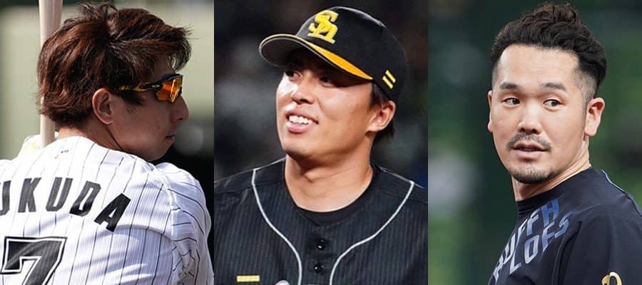 ロッテ・福田秀平、ソフトバンク・田中正義、オリックス・T-岡田(左から)【写真:荒川祐史】