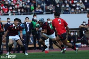 4年生に関しては4年間一緒にプレーできて嬉しかったですし、早稲田のラグビー部で出会えて本当に良かったです。ここまで来れたのは4年生みんなの力だと思いますし、今は感謝しかないです。後輩のみんなに関しては今日の悔しさを忘れずに、僕らのリベンジを果たしてほしいといったら少し重荷になるかなと思うのですが、今日の悔しさを忘れずに新チームで頑張ってほしいなと思います。