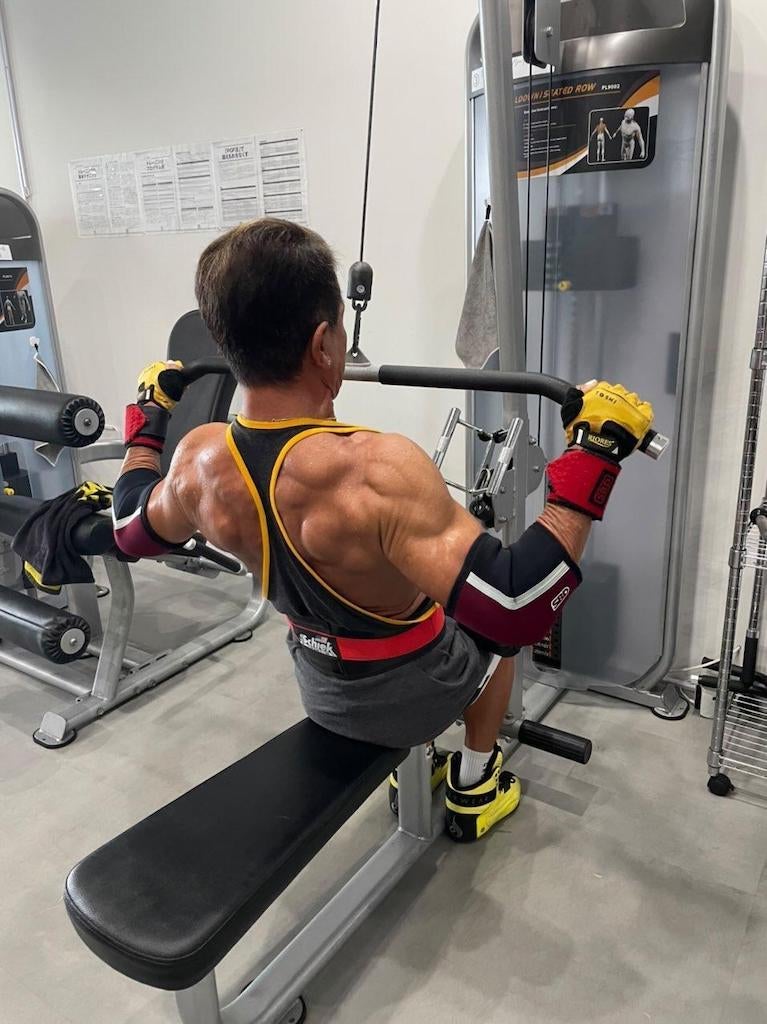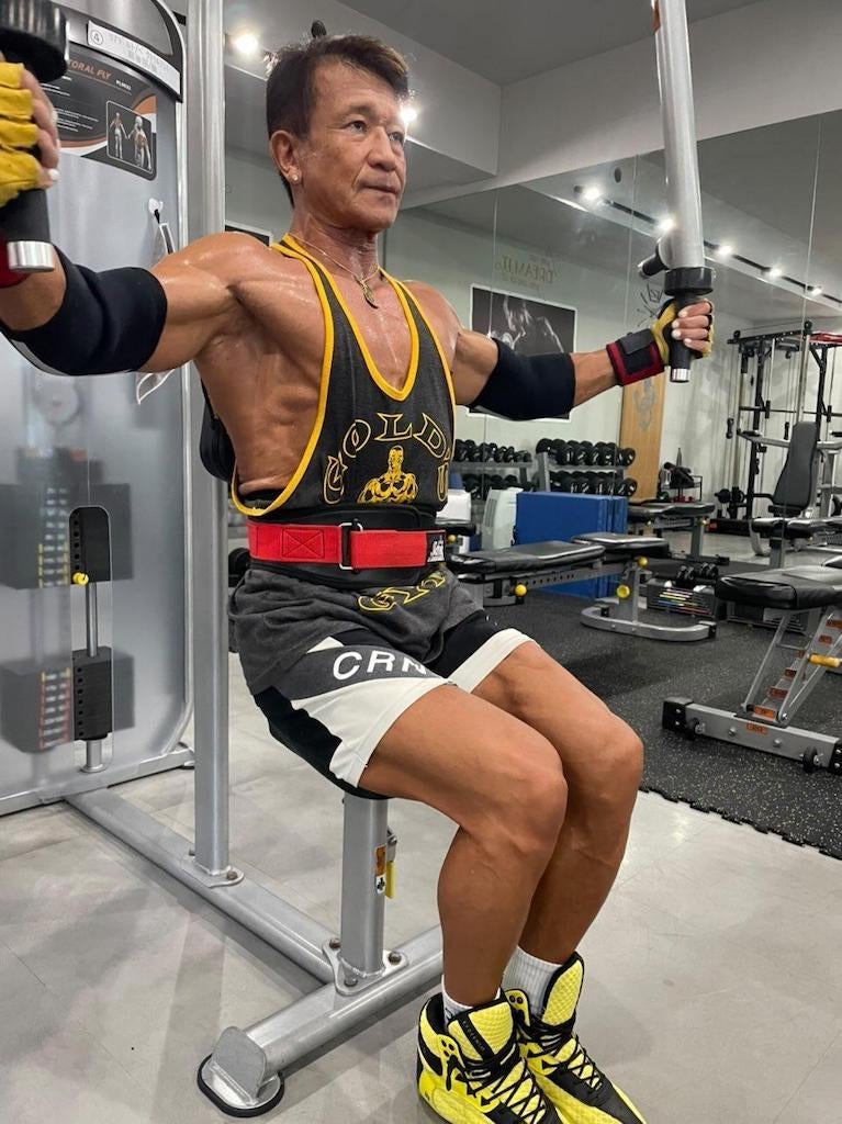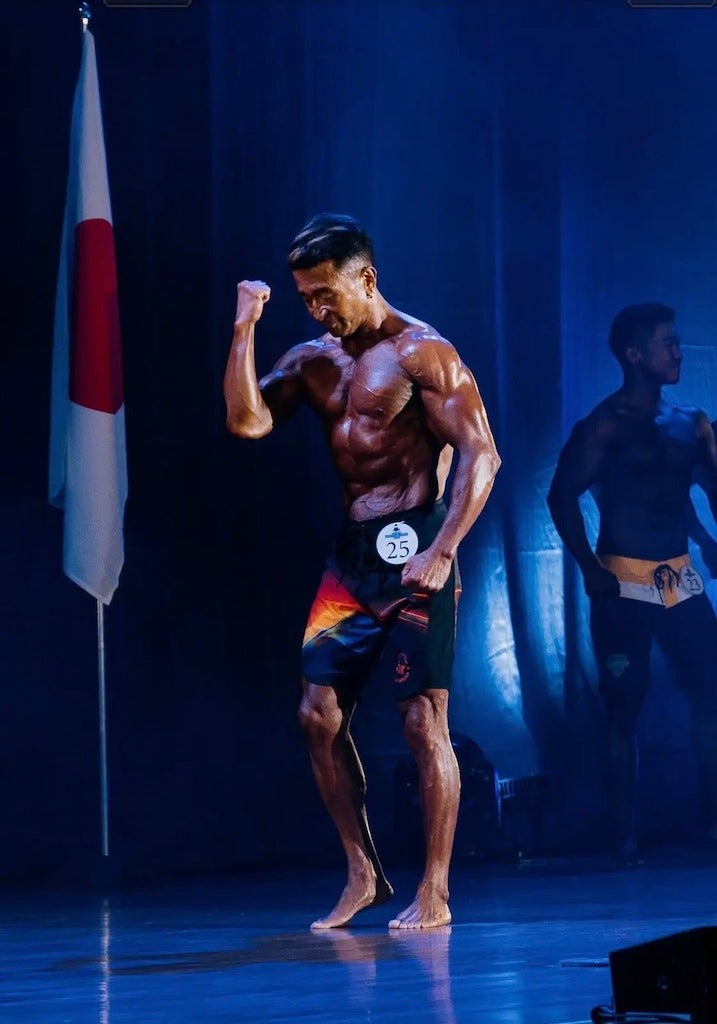 ジム通いを本格的に始めた59歳からでは筋肉は付かないとジムのトレーナーに言われ、本当かを確かめるためボディメイクに取り組みトレーニングの成果を確認するためにエントリーしました。