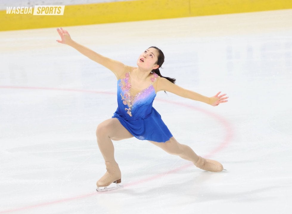 日本学生氷上競技選手権大会(インカレ)男女7、8級の競技。今年は早大フィギュア部門から4人が出場した。昨年末の全日本選手権(全日本)にも出場した西山真瑚(人通3=東京・目黒日大)はミスがありながらも伸びやかな演技を見せ10位に。女子は3人が出場し、それぞれの課題や試練を乗り越えた、シーズンのクライマックスに相応しい演技を披露した。