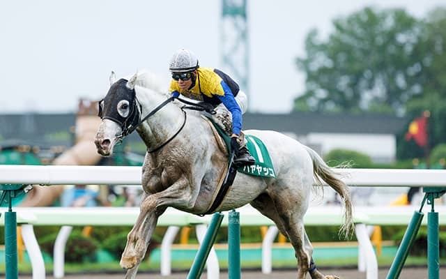 白毛一族では、いとこのソダシ、いとこの子どものメイケイエールに話題をさらわれがちだが、ハヤヤッコも総収得賞金が2億円を超える一流馬だ。とりわけ立派なのは息の長い活躍。2歳時に芝の未勝利(新潟芝1800m)で初勝利を挙げたが、その後はダート路線へ。3歳時に500万下(中山ダ1800m)とレパードS(新潟ダ1800m)、4歳時にブラジルC(東京ダ2100m)、5歳時にはスレイプニルS(東京ダ2100m)を制した。