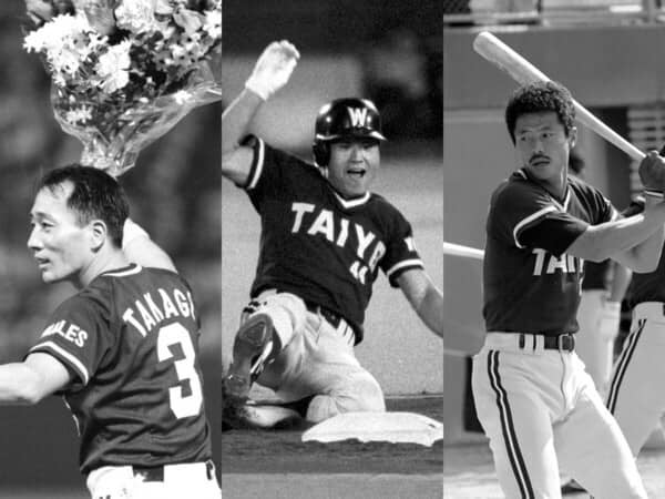 大洋のスーパーカートリオ、(左から)高木豊、加藤博一、屋鋪要
