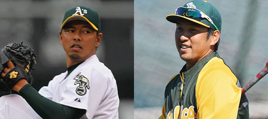 アスレチックス時代の藪恵壹氏(左)と中島宏之【写真:Getty Images】