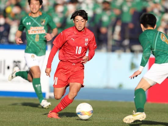ベスト4進出の神村学園で目を引いたのは、2年生のFW西丸道人と1年生のMF名和田我空の下級生コンビ。福田と2トップを組んだ西丸は、落ちてよし、サイドに流れてよしの多芸ぶりを見せ、しかも左右両足でパワフルにシュートまで持ち込む馬力を備えていた。どちらかというと点をとることに特化していた福田にとっては、非常に心強い相棒だったに違いない。