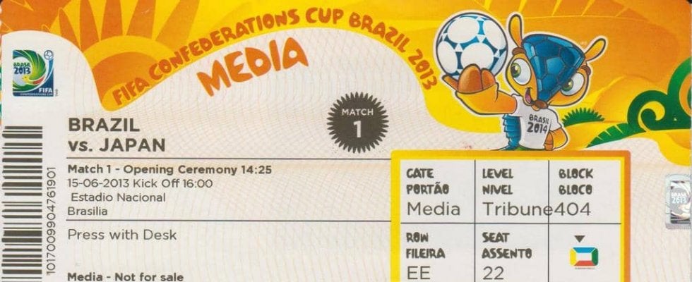 2013年コンフェデレーションズ・カップ開幕戦の入場券 提供/後藤健生
