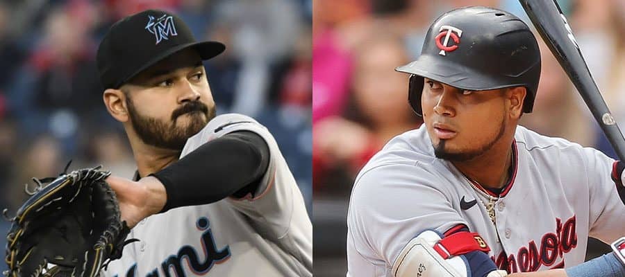 マーリンズのパブロ・ロペス(左)とツインズのルイス・アラエス【写真:Getty Images】