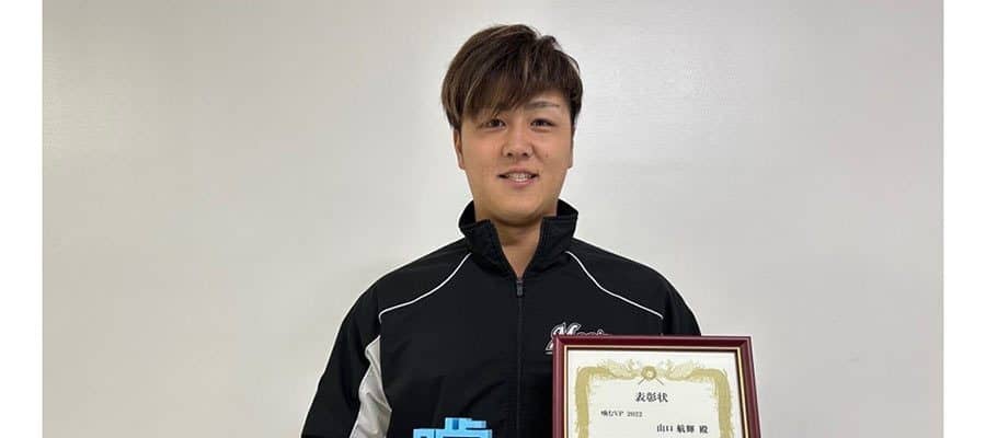 「噛むVP」を受賞したロッテ・山口航輝【写真:球団提供】