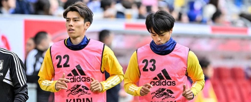 サッカー日本代表・田中碧(左)。右は三苫薫 撮影:中地拓也
