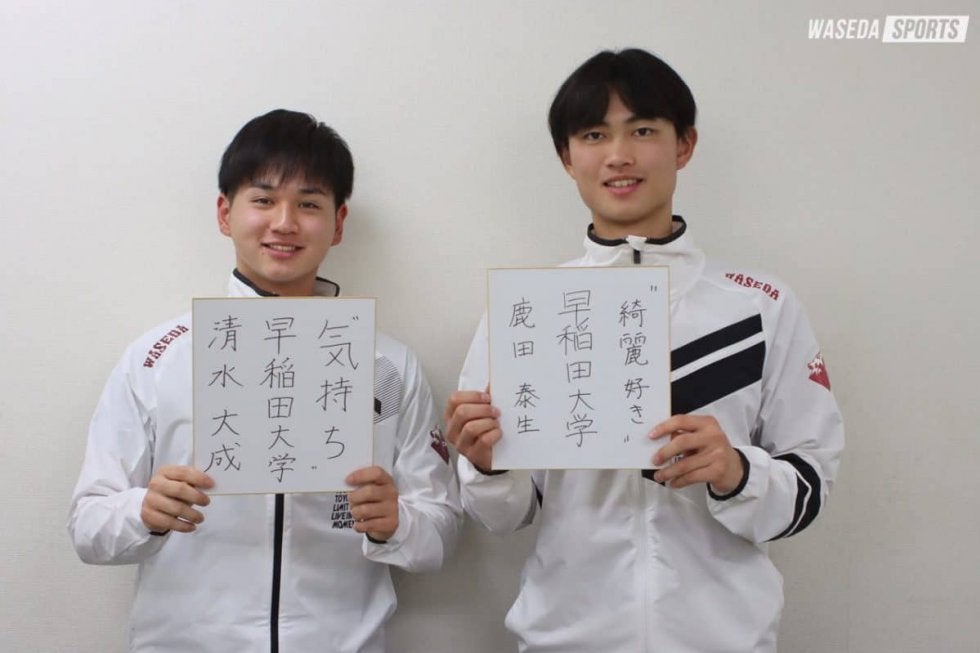 初回に迎えるのはそれぞれ昨年、リーグ戦初先発を果たした清水大成(スポ3=大阪・履正社)、鹿田泰生(商2=東京・早実)。2位で終えた昨秋、春季の5位からの躍進を支えた投手陣は多くの選手が新体制でも残留。2年ぶりの賜杯奪還、そして日本一を期す今年は投手王国の到来が期待される。エース・加藤孝太郎(人3=茨城・下妻一)に次ぐ先発投手の座を争う二人に2023年の抱負、さらにはプロへの意欲を伺った。