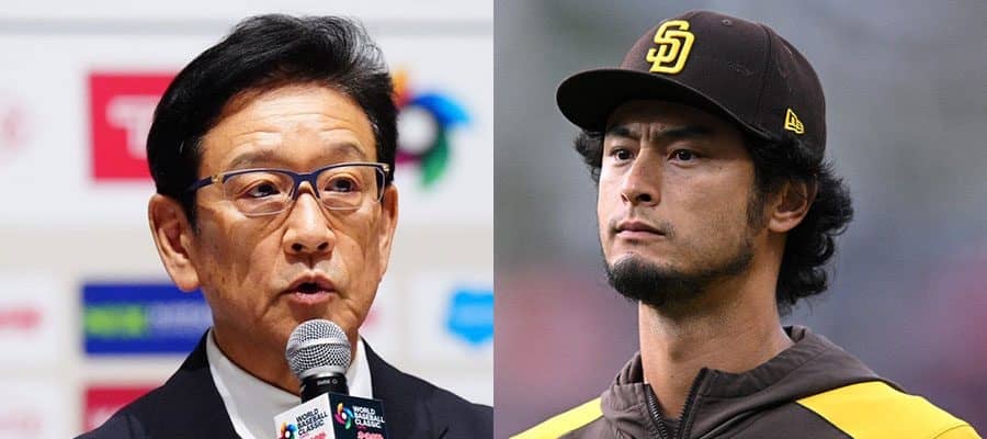 侍ジャパン・栗山英樹監督(左)とダルビッシュ有【写真:荒川祐史、ロイター】