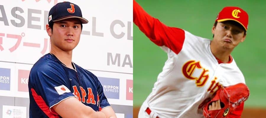 侍ジャパン・大谷翔平(左)と中国代表のチュ・グォン【写真:荒川祐史、Getty Images】
