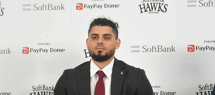 入団会見に臨んだソフトバンクのロベルト・オスナ【写真:藤浦一都】