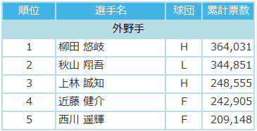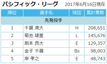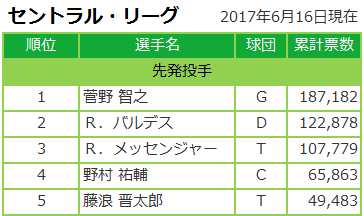 前日投票分と比較しよう!マイナビオールスターゲーム2017 ファン投票 6/15発表分!!