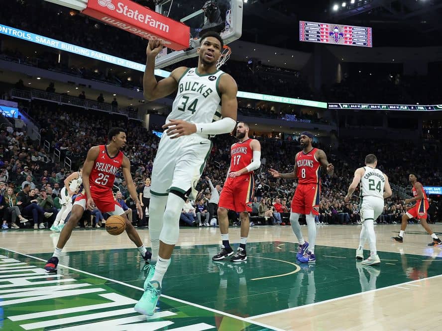 ザイオンの戦線離脱から3勝10敗と絶不調のペリカンズに、バックスは容赦なく襲い掛かった。第1クォーターを37-19と圧倒、ヤニス・アデトクンボは試合開始からの8分間でフィールドゴール10本中8本成功の18得点を奪った。