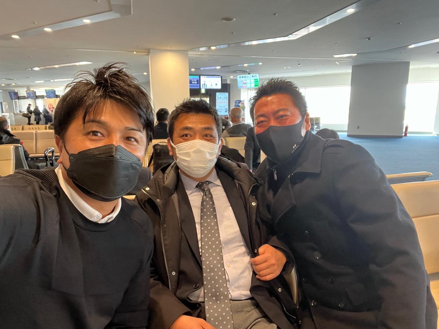 「羽田空港✈️にて…MLBの先輩、柏田貴史さん‼️NPBの先輩、高橋由伸‼️😜みんな宮崎キャンプへ」と綴られており、3人とも仲睦まじい様子が収められている。3人とも、羽田空港から現在プロ野球の春季キャンプが行われている宮崎へ向かった。