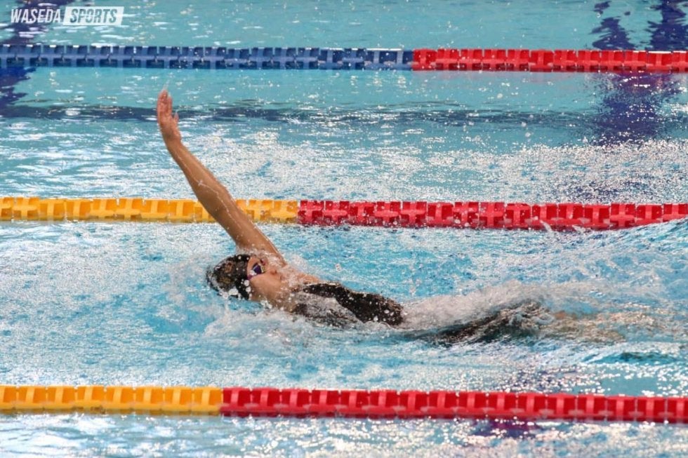 男子は14人の選手が16種目に出場。特に村上汰晟(スポ1=兵庫・明石南)の活躍が光った。専門とする背泳ぎで50メートル、100メートル、200メートルの全ての種目にエントリーし、50メートルで日本選手権、100メートルと200メートルでインカレの標準記録を上回った。この活躍で村上汰は新人賞も受賞している。他にも200メートル個人メドレーでは、長牛太佑(スポ2=京都外大西)が前半で差をつけそのまま逃げ切る粘りの泳ぎを見せ、大会記録を上回るタイムで優勝。このレースでインカレと日本選手権の標準記録もクリアした。チーム最多タイの5種目に出た田中大寛(スポ3=大分・別府翔青)は、50メートルバタフライでジャパンオープンの標準記録を突破。終始レースを引っ張り、この種目の優勝をつかんだ。早大の選手たちはのべ15種目でインカレ出場資格を得たが、目標としていた総合優勝には12点届かず、早大は明大に次ぐ2位となった。