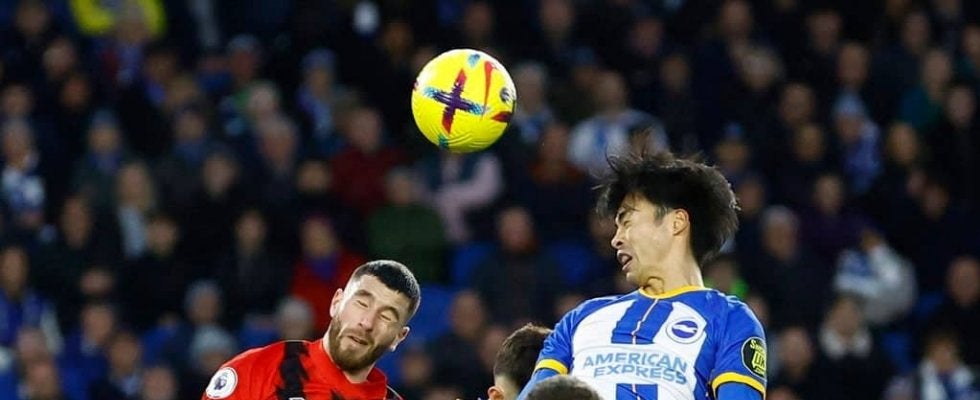 ブライトンMF三笘薫がヘディングでゴールを決めた 写真:ロイター/アフロ