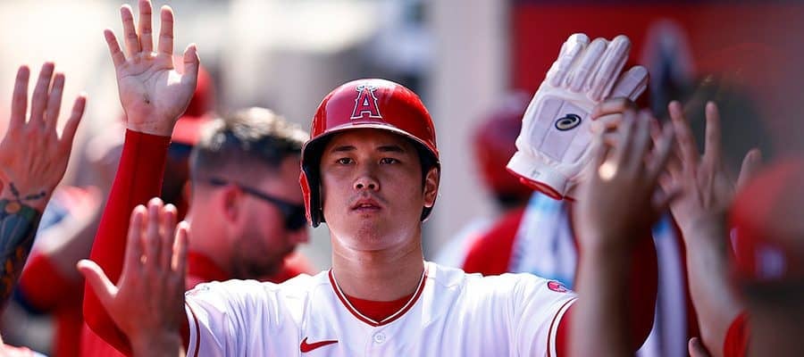 大谷翔平が天を仰いで頭抱える マルティネスの左膝を155キロが直撃 スタンドが騒然→一塁到達後にジェスチャーかわして両者笑顔に 6回無失点で初勝利の権利手に降板